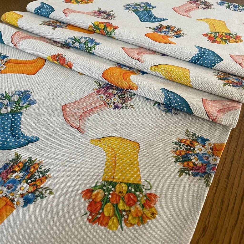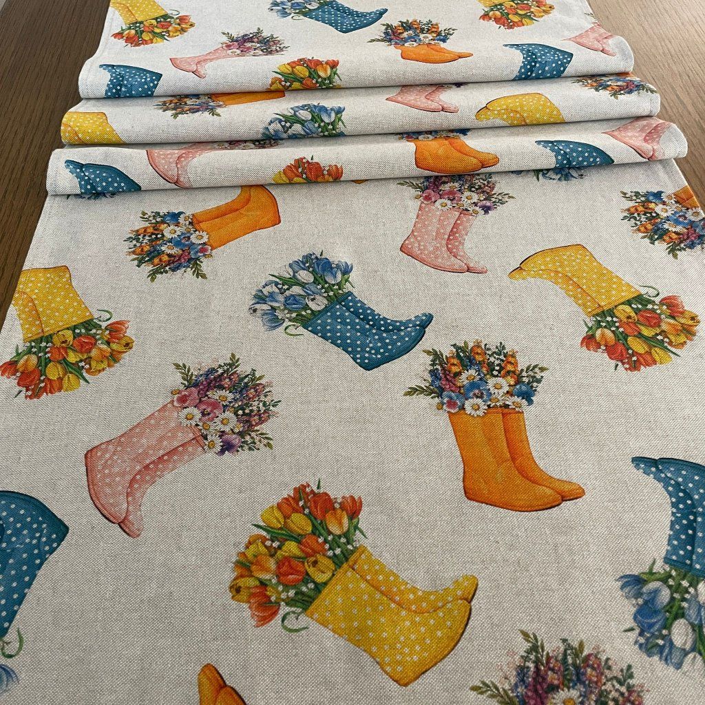 Běhoun z režné látky – jarní holínky, 139×52 cm
