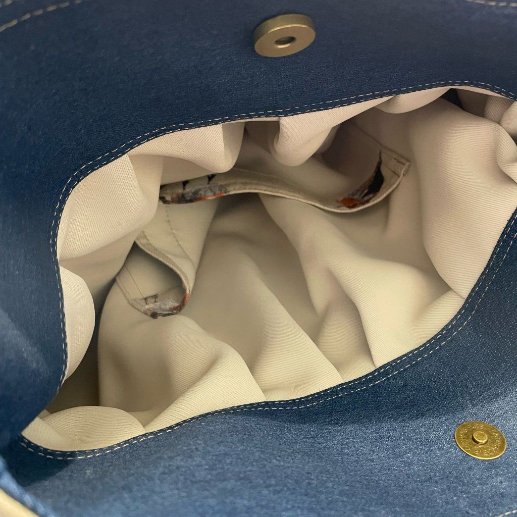 Díky kombinaci režné látky a rifloviny je kabelka nejen stylová, ale také pevná a odolná. Jemně nařasený střih dodává na ženskosti, zatímco nařasený tvar zajišťuje dostatek prostoru pro všechny vaše denní nezbytnosti.