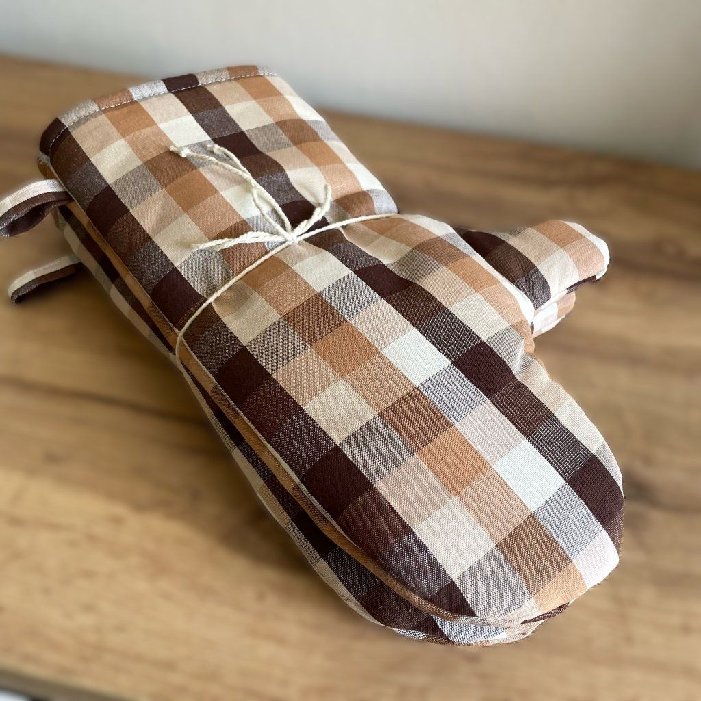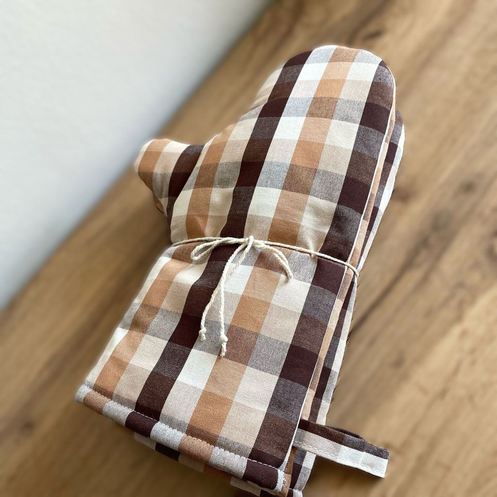 Kuchyňské chňapky dlouhé s magnetem 1 pár - hnědé kostky O2