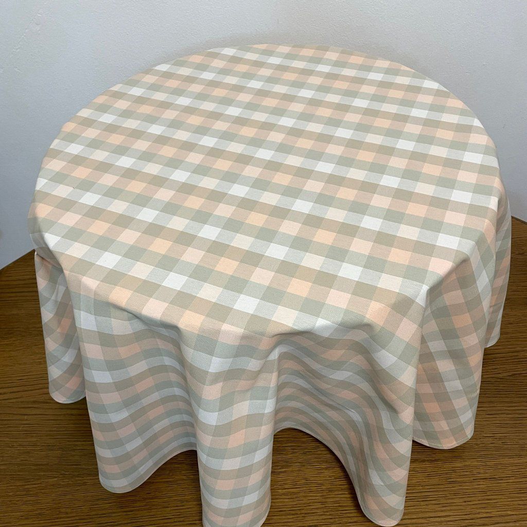 Kulatý bavlněný ubrus Ø 137 cm z kanafasu šedá, růžová kostka
