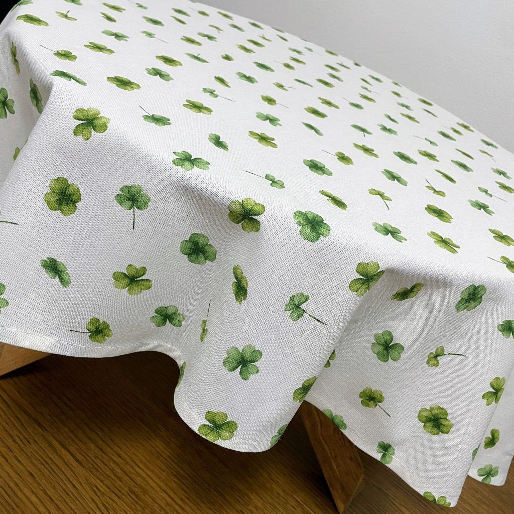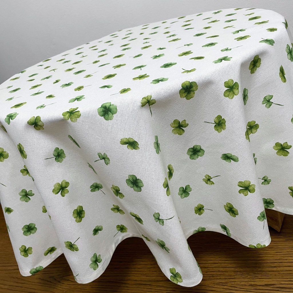 Kulatý ubrus Ø 135cm bílý, zelený čtyřlístek