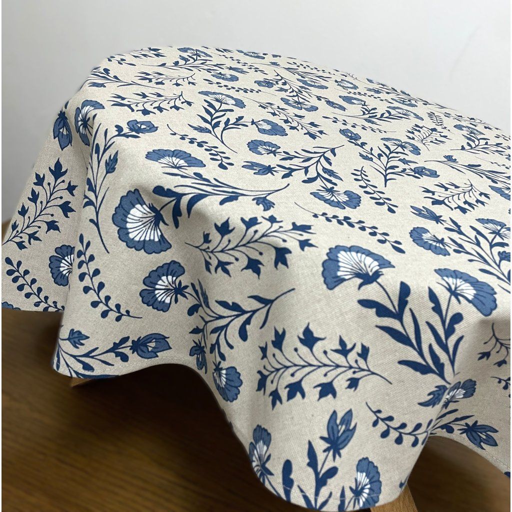 Kulatý ubrus Ø 137cm, přírodní vzhled modré květy