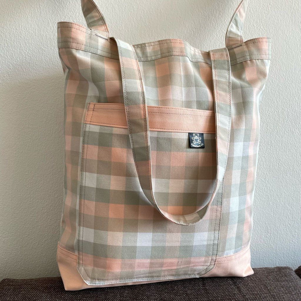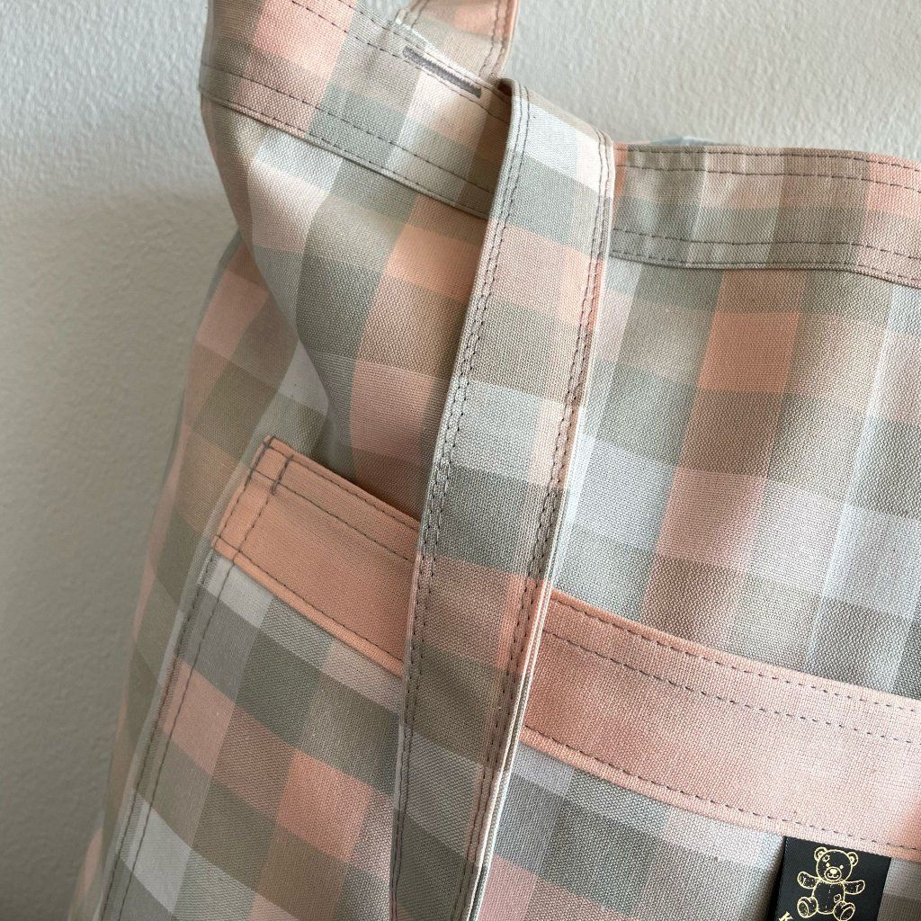 Látková taška přes rameno: Růžová, šedá kostka