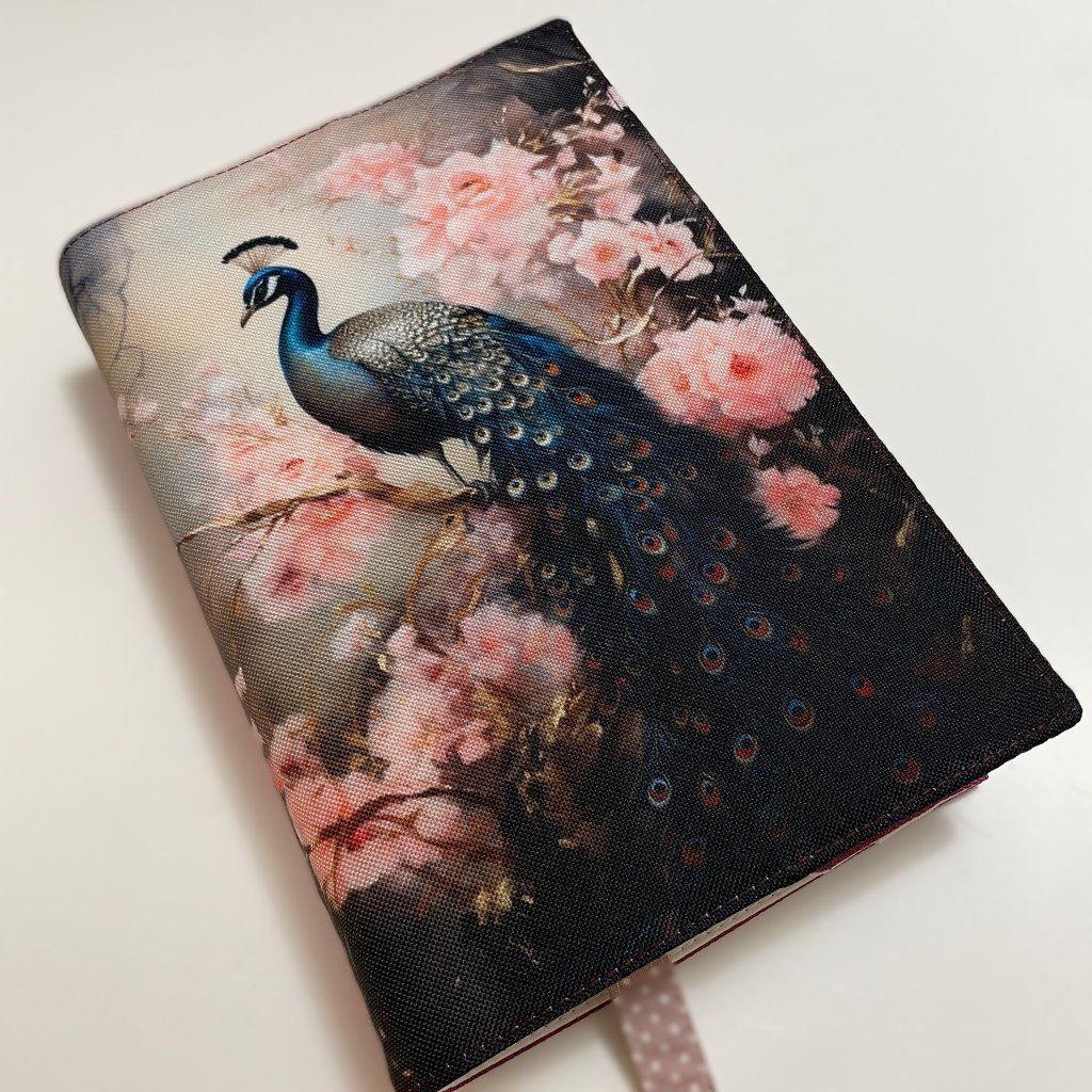 Látkový obal na knihu zaujme hezkým motivem na přední straně. Motiv páva
