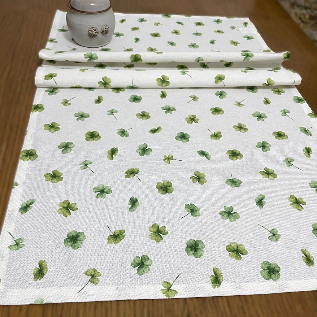 Obdelníkový ubrus bílý 95 x 49 cm, zelený čtyřlístek