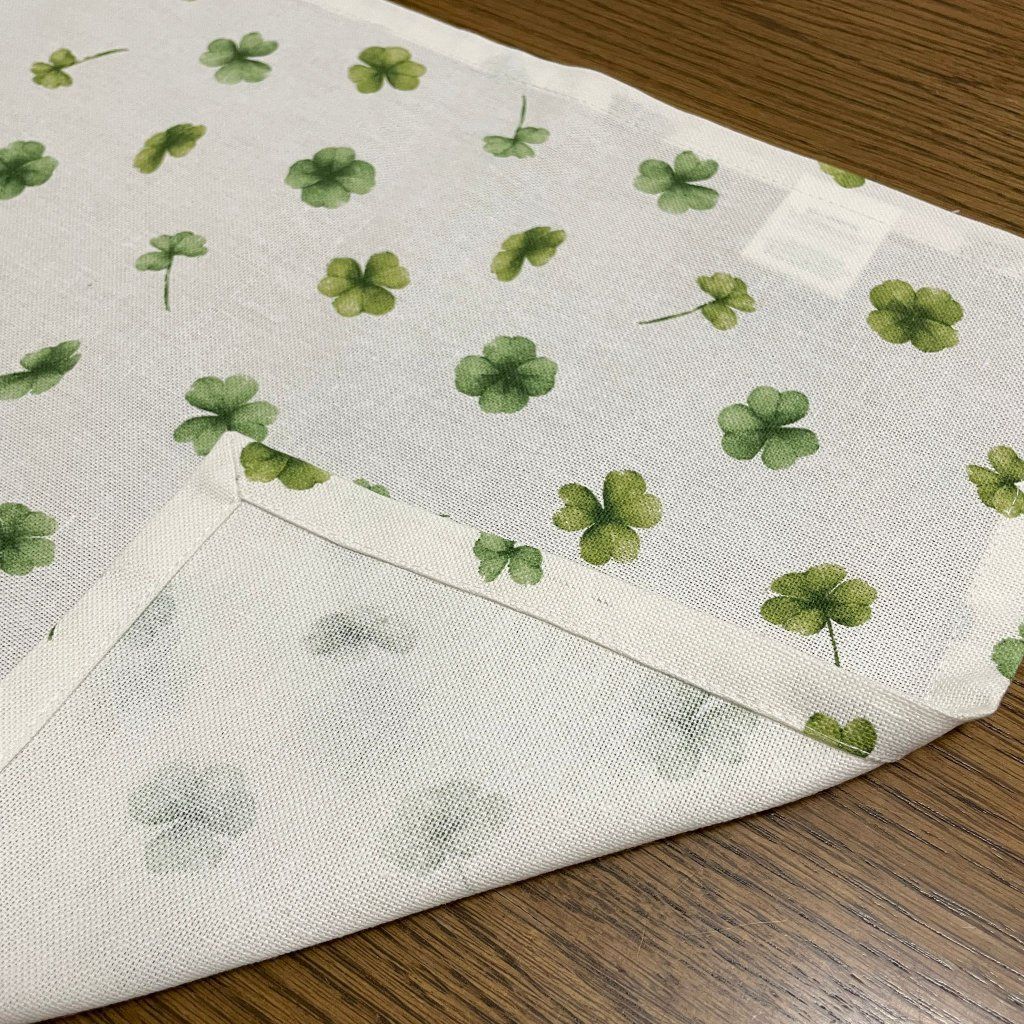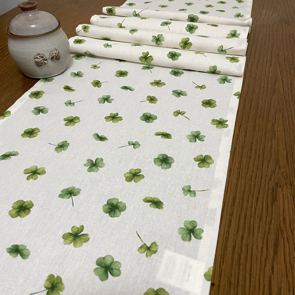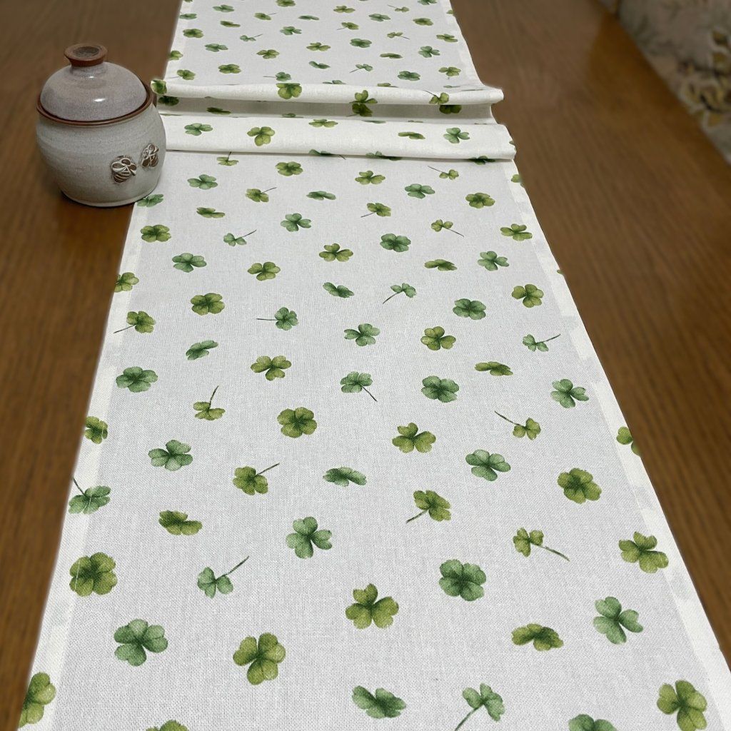 Ubrus běhoun, bílý - zelený čtyřlístek 154 x 34 cm